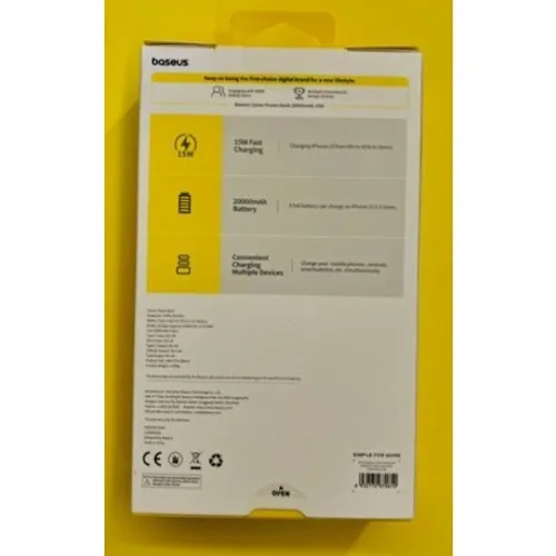 The Baseus Lipow Power Bank 20000mAh 15W is a reliable, high-capacity portable charger designed to keep your devices powered throughout the day. With a large 20,000mAh battery, it can charge most smartphones multiple times, making it ideal for travel, work, school, or emergencies.