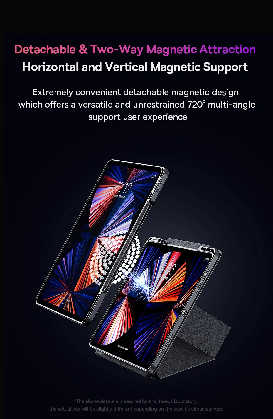 Extremely convenient detachable magnetic design which offers a versatile and unrestrained 720° multi-angle support user experience