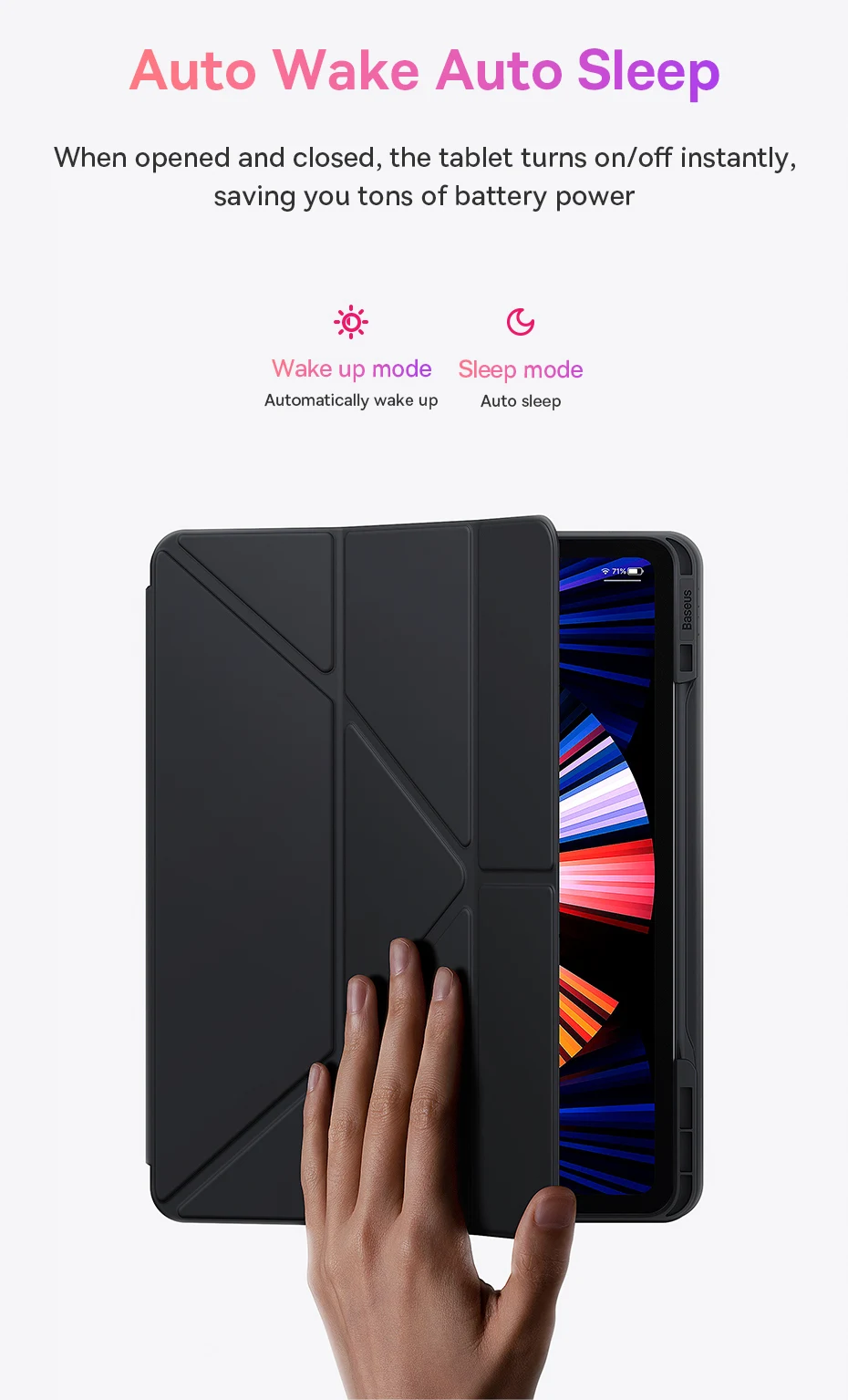 - Auto Wake Auto Sleep: When opened and closed, the tablet turns on/off instantly, saving you tons of battery power